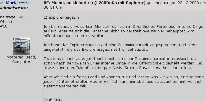 Und diesmal kam eine Antwort von demselben Mann, nun nicht mehr "Messeleitung", sondern mit Mailadresse bei einem bekannten OffRoad-Blatt, das uns genau so bekannt vorkam wie der Name im Zusammenhang mit dem Blatt: