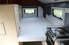Ganz oben auf der Prioritätenliste stand ein bequemes großes Bett, ohne großen Aufwand jeden Tag schnell herzurichten, das den auf langen Reisen notwendigen gesunden Schlaf garantieren sollte. Neben dem Bett standen noch bequeme Sitzmöglichkeiten für Essen, Lesen, Spielen usw. auf der Liste, damit man im Auto auch mal "getrennte Wege" gehen könnte.