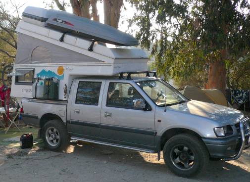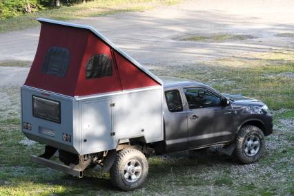 (09/13) Offroadtaugliche Wohnkabine für 1,5 Kabiner Pickup zu verkaufen. Schlafplatz für 2 Erwachsene und 2 Kinder, 2flammiger Gaskocher, Spüle, Wassertank, Gebrauchwassertank, Sonnenmarkise, Leiter aufs Dach, Solar und div. Staufächer. Kabine wird einfach an der Pritsche fest geschraubt.