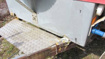 Mängel der Kabine: Vorn an den Ecken sind 2 Scheuerlöcher und das Holz darunter ist marode. Die Zeltbahn hat ebenfalls einige Scheuerlöcher und sollte ersetzt werden. Kochzeile und Heizung werden noch ausgebaut. Das heißt, der Wildcat ist dann wirklich "nackt". Er steht noch auf dem zigfach geschweißtem Fahrgestell, sollte aber auf einem Anhänger abtransportiert werden.