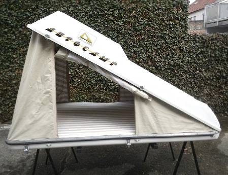 Mod. 130 x 210 cm, geschlossen h: cm 30, geöffnet h: cm 92, Gewicht ca.: 56 kg, also von 2 Personen gut handlebar, besonders auch für SUVs geeignet.