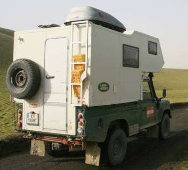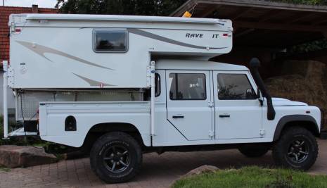 Die Kabine ist ein Eigenbau von A-Z und wurde speziell für den Landrover Defender 110 HCPU angepasst. Sie passt auch auf den 130er mit Doppelkabine, steht dann allerdings hinten etwas über die Ladekante des Fahrzeugs über. Die Kabine passt sicherlich auch auf andere Fahrzeuge mit etwas größerer Ladepritsche, wäre nur auszumessen.