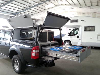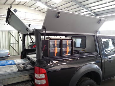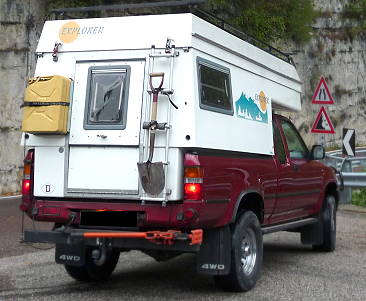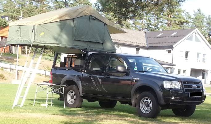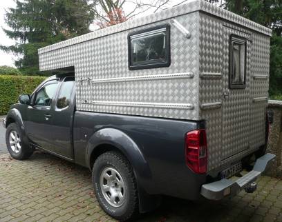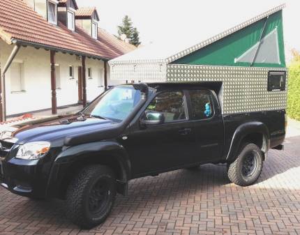 Der Pickup hat im Oktober 2013 ein Hardtop mit Klappdach und Schlaffunktion aus Aluminium von der Firma ORTEC bekommen. Der Aufbau ist isoliert. Enthalten sind auch ein Bettauszug, eine neue Froli-Matratze (NP 518 EUR) mit Liegefläche 2,0 x 1,4 m, eine unbenutzte PortaPotti-Toilette, eine AGM-Zweitbatterie inkl. Laderegelung, LED-Beleuchtung, einfaches Regalsystem, Waschbecken mit fließend Wasser, 15 Liter Frischwasser + 15 Liter Abwasser als Kanister, 2 Ausstellfenster mit Verdunklung und Fliegengage der Firma Seitz. Alle Einbauten sind einfach herausnehmbar. Dann kann man das Hardtop als riesigen Kofferraum nutzen. Das Hardtop ist abnehmbar (Gewicht ca. 200 kg). Bei Bedarf gebe ich eine Mountaintop-Ladeflächenabdeckung aus Alu von RoadRanger und ein Paar GFK Sandboards mit dazu.