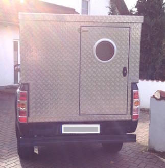 Die Armaturen zur Befestigung der Kabine am Nissan Navara 2,5 TDI Doppelkabiner oder Mitsubishi L 200 samt Anschlusssteckdose können mitgeliefert werden oder hier sogar von der Werkstatt eingebaut werden; zusätzlich ist eine handhabbarere Befestigungsmöglichkeit als die übliche eingebaut (wahlweise), die alte wird mitgeliefert. Dazu auch gerne die Spiegel für das Zugfahrzeug.