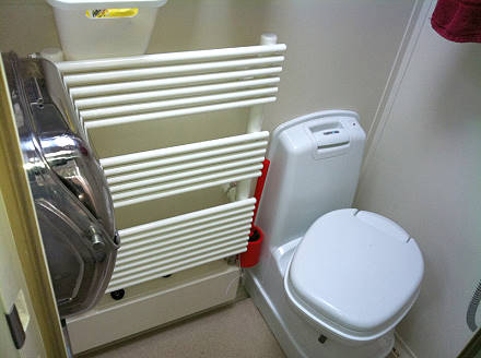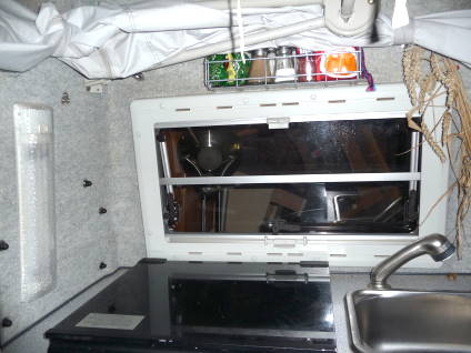 Zu der üblichen Ausrüstung einer Tischer Trail 230-Kabine ist noch ein Klappwaschtisch eingebaut worden (2014), eine Arbeitsflächenverbreiterung (2007) am Küchenmodul und ein 1500 W Konverter in 220/230 V (2013). Die Bord-Batterie (keine Starterbatterie, sondern die richtige für diesen Zweck) ist 8/2013 erneuert und auch eine Rückfahrkamera, die wahlweise auch mit in die Kabine genommen werden kann zur nächtlichen Überprüfung, wer draußen was will, ist installiert worden. Die ausziehbare Markise (re. Seite) ist voll funktionsfähig. Zusätzlich zum Doppelfahrradständer ist auch das vorschriftsmäßige Schild (rot-weiß gestreift) angebracht (eigentlich Blödsinn, aber wer es nicht hat, muss zahlen).