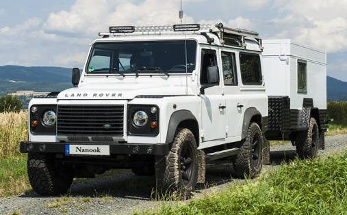 Der Anhänger läuft absolut zufriedenstellend hinter dem Landy her - man spürt den Hänger kaum. Auf engen Landstraßen fährt sich das Gespann ebenfalls problemlos, der Hänger stört dabei in keiner Weise. Man muss beim Abbiegen oder um enge Kurven zu fahren, nicht weiter ausholen als ohne Anhänger. Beim Rangieren haben wir trotz der V-Deichsel einen Einschlagwinkel von fast 90°. Der "Nanook TL 300" lässt sich gut rangieren und ist im Spiegel gut zu sehen.