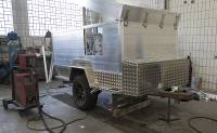 Das "Häuschen" vom "Nanook TL 300" besteht aus 25 mm ALU Profilen, welche auf einem ALU Grundrahmen sitzen. Die Bodenplatte ist von außen ebenfalls Aluminium. Innen wurde der Boden mit Armaflex isoliert und darüber kam eine wasserfeste MDF Platte. Im vorderen Drittel wurden Isolierfenster eingebaut, um Licht in das Innere des Anhängers zu bringen. Ein Dachfenster ist im Moment noch nicht eingebaut. Geplant ist, dass im Dachbereich - falls erforderlich - eine Offshore Luke eingesetzt wird. Der Seitenwände wurden im Innenbereich ebenfalls mit Armaflex isoliert. Als Seitenwandverkleidung kommen ALU Dibond Platten zum Einsatz.