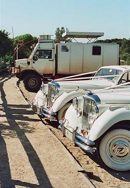 Gut sieht man im Größenvergleich mit den "benachbarten" Jaguars im Bild unten links die extrem kompakte Form des 3-m-Aufbaus mit geschlossenem Hubdach. Das Hubdach ist auf einer im Dach integrierten Trägerplatte montiert und kann innerhalb kurzer Zeit für die Verschiffung im Container abgebaut werden.