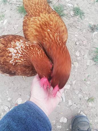 gemütlich in meinem Stuhl und beobachte zwei freilaufende Hühner.