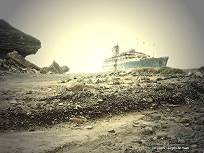 And then, when the whole ship slowly appears: She is lying as a stranded ghost ship in the dark bay and despite sunshine on this day, one can only imagine how it looks during different weather."