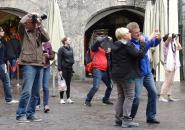 Eine Pause an diesem Platz sollte man sich auch wirklich gönnen, denn man sitzt am Rande einer herrlichen Bühne und kann dabei den Touristen zuschauen, die das Goldene Dachl, das Helblinghaus schräg gegenüber oder den Stadturm fotografieren. Selbstverständlich wird das Ganze auch schon mal als Selfie gestaltet - getreu dem Motto: Ich und Du und das Goldene Dachl dazu ...