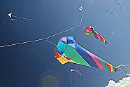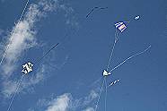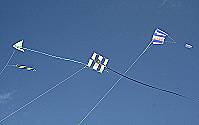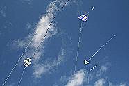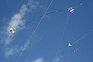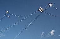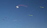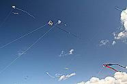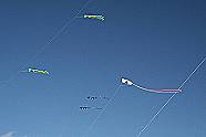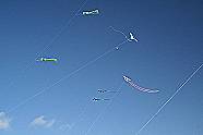 Fuerteventura 2011: Auch nun erneut ein Start an der Westküste, und das gleich an mehreren Tagen unseres Aufenthaltes. Der unvergleichlich blaue Himmel über der Kanareninsel lädt ein zu Farben- und Wechselspielen mit der ganzen Drachenflotte, und die Leinen, Windturbinen und Fluggeräte selbst formen diverse geometrische Formen und Verbindungen am Himmel - eine echte "Fiesta de Cometas" eben, wie man so ein Event in Spanien nennt ...