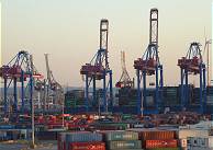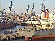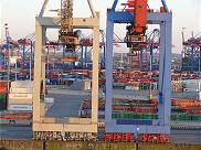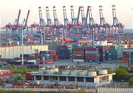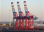 Hamburg und seine Kräne: Teile, auf denen Aufschriften wie "Burchardkai" oder "Tollerort" zu sehen sind und die mehr oder weniger Requisiten im täglichen Hafenbetrieb sind. Ebenfalls täglich fahren Barkassen durch diesen Hafen und während der vielen Rundfahrten kann man oft eine endlose Kette von derartigen Kränen und ähnlichem vorbeiziehen sehen, die interessierte Touristen und vor allem an diesen Anblick nur wenig gewöhnte Besucher in ihren Bann ziehen.