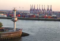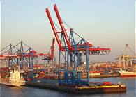 Ebenfalls passiert wurde bei dieser Rundfahrt u.a. der Bereich des Burchardkais, an dem unzählige Containerkräne im Licht der Abendsonne ein fantastisches Bild boten - und davon soll an dieser Stelle ein kleiner Eindruck vermittelt werden ...
