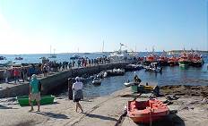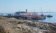 Wir stehen an der Anlegestelle auf der Insel Saint-Nicolas: Durch Zufall haben wir heute den Tag getroffen, an dem auf den Inseln ein jährliches Fest gefeiert wird. Ein Fest zu Ehren der vielen Menschen, die auf See geblieben sind. Das bedeutet, dass heute tausende Besucher diese Inselwelt besuchen werden. Hunderte Boote jeder Größe laufen den ganzen Tag über ein: Sie ankern vor allen Inseln und ihre Besatzungen bevölkern die Strände in der warmen Sonne. An der Anlegestelle bringen die Touristenboote Menschen über Menschen nach Saint-Nicolas ...