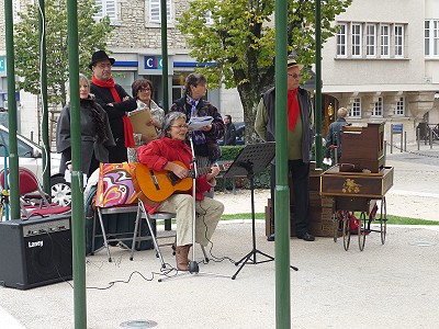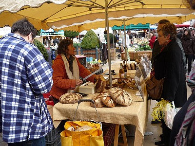 Der Feinschmeckermarkt dort ist mehr als sehens-, riechens- und schmeckenswert: An jedem Stand kann man sich kaum satt sehen - Trüffeln aus dem Perigord, Hühner aus der Bresse, Austern aus der Bretagne, Pilze aus der Region, ... Unweit vom Feinschmeckermarkt findet ein Trödelmarkt statt und eine Literatengruppe sorgt für Unterhaltung der Besucher. Eine tolle Stimmung, die man noch lange in Erinnerung halten wird.