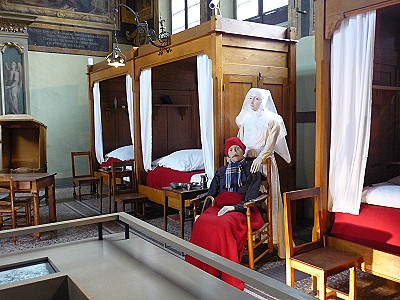 Wer nach Beaune kommt, muss auch das Hospices de Beaune Hotel-Dieu besuchen, das im 15. Jahrhundert als soziale Einrichtung erbaut wurde. Bis 1971 wurden hier im großen Saal Kranke gepflegt und die Besichtigung schafft einen guten Eindruck und ein Gefühl für die hier herrschende schaurige Stimmung vergangener Zeiten, zu denen sich mehrere Kranke noch ein Bett teilen mussten ... Heute dienen Teile des Gebäudekomplexes noch als Altersheim.