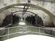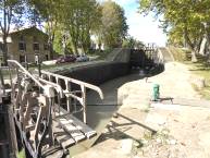 Von diesem Speisepunkt des Kanals bei Naurouze aus fließt das Wasser dann einerseits südöstlich in Richtung Mittelmeer über die erste Schleuse La Mediterranée, andererseits nordwestlich in Richtung Atlantik über die erste Schleuse L´Océan. Beide Schleusen verfügen jeweils über eine Einzelkammer, in der es bereits rund 2,60 m vom Speisepunkt aus abwärts geht.