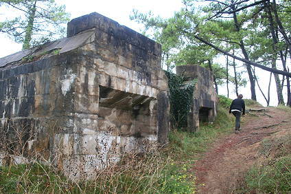 Wir erreichen einen Schartenbunker, der einst die Zufahrt zur Halbinsel