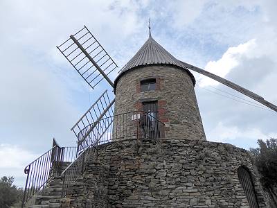 Auf halbem Weg befindet sich die Windmühle von Coullioure aus dem 14. Jhdt.: Einst eine Getreidemühle wurde sie vor dem Verfall gerettet und ist heute eine funktionstüchtige Olivenölmühle. Vorbei am Museum für moderne Kunst sind wir bald wieder in der Bucht La Ballette.