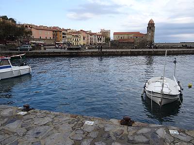 Es beginnt zu tröpfeln, schnell steigen wir ein und zockeln durch enge Gassen des Orts, Weinberge und Garrigue hinauf. Oben angekommen steigen wir aus, um den weiten Blick auf die Bucht und Coullioure zu genießen. Da kann man verstehen, dass schon in der Steinzeit hier Siedlungen entstanden und der Hafen seit der Antike eine große strategische Bedeutung hatte.