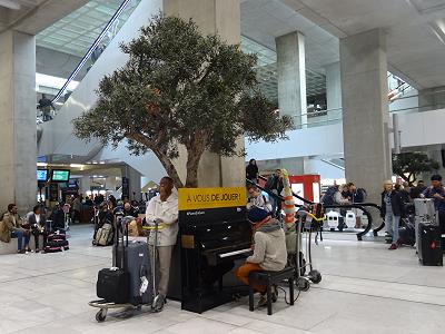 Am Piano, das üblicherweise den Reisenden in französischen Bahnhöfen zur Verfügung steht, klimpern heute nur wenig begabte Pianisten mehr oder weniger lustlos herum ...
