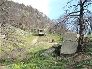 Am nächsten Morgen lacht wieder die Sonne und lädt uns zu einer Wanderung auf den Spuren der Partisanen ein: 1944/45 gehörte das Cenistal noch zu Italien, hieß Val del Moncenisio und diente dem Comandante Laghi und seiner Partisanendivision Stellina als Operations- und Rückzugsgebiet. Nach einer kurzen Wegstrecke kommen wir an einem relativ großen verfallenem Gebäude vorbei, der ehemaligen Kaserne Ricovero Finestre, und sehen oberhalb am Bergkamm Ruinen einer Geschützstellung, von wo aus sich ein schöner Blick hinab auf den See bietet.