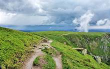 den rechten Weg zurück. Dunkle Gewitterwolken folgen uns über