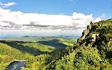 Gestärkt folgen wir den Wegweisern durch helle Wälder, Sträucher und Felsenformationen. Weitläufige Panoramen lugen hinter jeder zweiten Anhöhe hervor. Das letzte Stück bildet ein langer Feldweg, der uns vorbei am kleinen Lac Noir zur Auberge du Blancrupt führt.