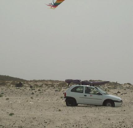 Eigentlich eine schöne Variante, wenn sie denn nicht so arbeitsintensiv wäre! Da kommt er zügig reingefahren, der einsame Surfer mit seinem Brett auf dem Dach - bereits im ersten Anlauf schafft er es problemlos, sich mit seinem Opel Corsa festzufahren, immerhin ist er fast 80 Meter hinein gekommen!