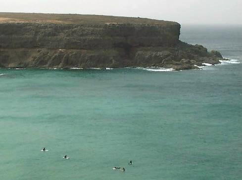 Wieder starten wir am "Castillo de Rio Roque" und fahren von da aus wie im Jahr zuvor bis zur Esquinzo-Schlucht (N28°38,23´ W014°01,54´). An dieser beeindruckenden Steilküste treffen wir diesmal auf eine größere Gruppe von Surfern, die sich bei dem starken herrschenden Wind dort unten gesammelt haben und Erinnerungen an den beeindruckenden Film "Gefährliche Brandung" wach werden lassen ...