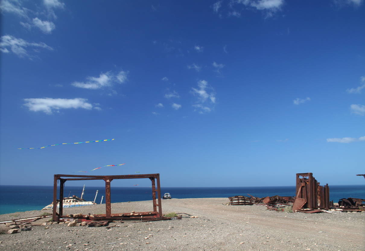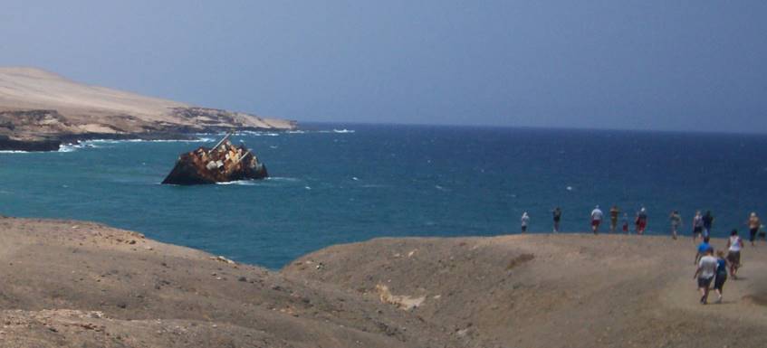 ... I would have loved to stay longer on Fuerte; however, I got almost everything done that I had planned (Pico de la Zarza, "American Star," Puerto de la Pena, Cofete, and Puerto de Rosario). On May 30th, we were at the wreck. This time (Canarian Holiday), there were many people here (day-trippers and campers) ...