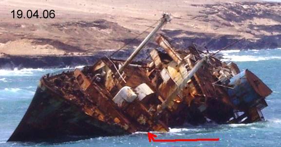 Our reader Ralf Faltermann visiting the wreck regularly sent us again a mail including some photographs - among those the latest from May 4, 2006.