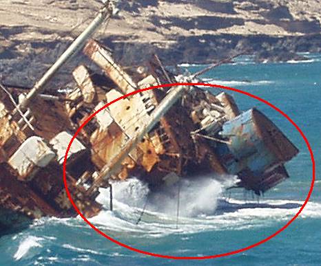 the ocean and the hull is considerably twisted. Knee-deep, you can find