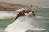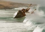 seitdem ich Anfang des Jahres auf diese Seite gestoßen bin, ließ mich die Geschichte nie mehr los. Ich wollte unbedingt noch vor Ort sein, bevor sie ganz den Wellen zum Opfer fällt. Als es darum ging, das Urlaubsziel für dieses Jahr auszuwählen, stand Fuerteventura ganz oben auf der Liste. Auf Fuerteventura angekommen habe ich mir sofort einen geländegängigen Wagen gemietet und mich auf die Suche gemacht. Da ich aus dem Süden kam, nahm ich die erste Abfahrt, durch das Militärgebiet ... war schon das erste Abenteuer. Dann stand ich vor ihr bzw. vor dem traurigen Rest ...