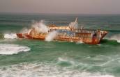 Das Vorderdeck wurde von der See nun mehr als bis zur Hälfte abgetragen und verblieben ist der massive Bugsteven, der sich noch mehr zur See geneigt hat. Wie lange der Anker noch sichtbar bleibt, ist davon abhängig wie lange es dauert, bis die noch verbliebene Abstützung in der ehemaligen Backbordseite ebenfalls nachgibt.