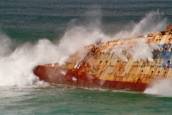 Der verbliebene Rumpf wird sehr wahrscheinlich durch die Wellenschläge "ausgehöhlt".