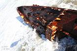 One thing we do not know at this time: In a few days, we will find the wreath hitting directly in front of the wreck’s back part again: Washed up the beach by the same ocean gnawing away relentlessly the American Star’s remainders ...