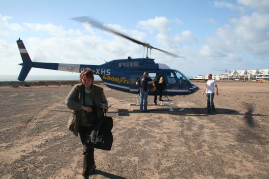 I think that we will have a large number of photographs from different angles within 15 minutes. Before take-off, we will definitely talk about the details with the pilot. During the flight, we will be able to talk to each other via the onboard-intercom-system (with the pilot only in English or Spanish). We will return to Cotillo along the coast above Ajuy - and depending on the flight time - also above Tindaya and Lajares. According to our plans, the total flight should last about 55 to 60 minutes. We will fly in our Eurocopter "Ecureuil" (squirrel) built especially for film and sightseeing flights (max. of six passengers plus one pilot)."