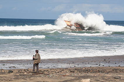 We observed the wreck in most diverse weather situations and made quite a lot of measurements to find out whether the tip of the bow has moved in the meantime. We had a phone call with a money-greedy "Majorero", who once plundered the wreck - enough action for a short week ...
