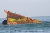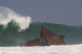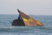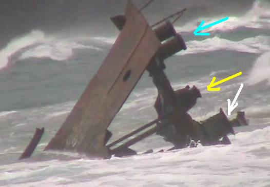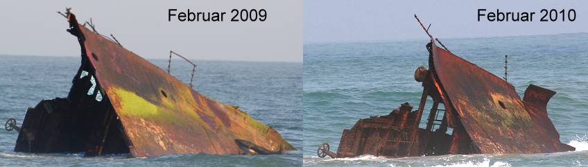 The situation is nearly the same as it was in 2008 but the deck of the remaining piece of bow is now by far more perforated by the waves than one year ago.