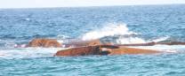 The rusty remainders of the containers on the cliff across the ship were removed since our last visit. Once you could trace them back to the Greek Nicolas - called "El Greco" who obtained the wreck from the Ministry of Defence since he wanted to make the bow floatable again after scrapping the stern ...