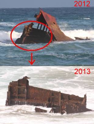 We are still surprised that it lasted this long - now 21 years since she drifted aground. Of course, until it sinks into the sand (probably), that solid anchor will resist Mother Nature for many more decades.
