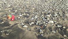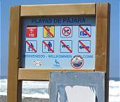 Überall an der Playa de Garcey stoßen wir wie schon seit Jahren auf jede Menge Metallreste, die vom Wrack bei heftigen Unwettern an Land gespült wurden. Hier weist zwar eine große Tafel inzwischen auf alles hin, was verboten ist, aber eines kann man an dieser Stelle ganz offensichtlich wie auch an anderen Küsten nicht verbieten: Unzählige Teile, aus denen ganze Plastikmüll-Berge an den Stränden bestehen und die millionenfach natürlich auch in den Weiten der Ozeane Fische und Vögel sterben lassen.