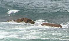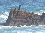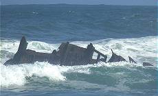 So hissen wir also schließlich nur ein 183 cm x 76 cm großes Banner, das wir für diesen Besuch haben fertigen lassen und postieren uns damit vor den Resten des Wracks - mehr Erinnerung geht an diesem Morgen in der berühmten Bucht wirklich nicht, in der die Reste der ehemaligen SS Australis seit Jahren ihrem Ende entgegen sehen ...