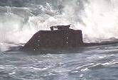 So aber sahen wir am Morgen des 04.03.18 bereits von weitem wieder das übliche Bild: Am auffälligsten der mittlerweile stark zertrümmerte Bug, bei dem nun das gegen die anrollende See gerichtete Deck weitgehend zerstört wurde und natürlich wie immer - Reste einer Bordwand und daneben die unverändert wirkenden benachbarten Teile: Elektromotor und Tank ...