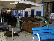 Rund um den Leuchtturm El Toston erwies sich aktuell alles als tot, weder waren da die einst windgeschützten Besuchersitzplätze zugänglich noch die früher dort vorhandene kleine Gastwirtschaft in Betrieb, wo man zumindest ein Flaschenbier erwerben konnte. An der Stelle, wo lange Jahre Reste der einstigen Massira I zu finden waren, gibt es heute nur noch einen großen Rostfleck. Dafür findet man noch ein Bild von ihr an der Wand der oben erwähnten Tapas-Bar.