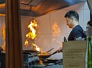 dem Koch bei loderndem Feuer zuschauen oder sich über Fotos an