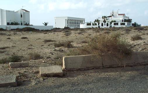 Wir sind begeistert: Ein Paradies direkt neben unserem Lieblingslokal "Azurro"! Weg vom geschäftigen stressigen Leben auf der Überholspur! Am Rande des verschlafenen (!!) Fischerdorfs El Cotillo! Der rauscharme Generator fällt uns zwar auf, stört aber nicht wirklich, schließlich lädt er ja wohl Batterien auf, die während der Nacht für Beleuchtung und Kühlung sorgen. Und das "eingemauerte" Grundstück ist uns ebenfalls bestens bekannt: Wir geben zu, dass wir im Jahr 2004 in unserem Beitrag damals dazu geschrieben hatten: