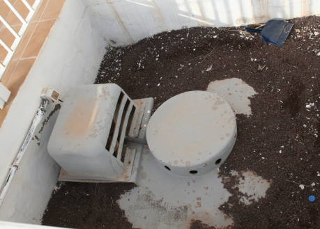 Draußen fällt der Pool auf: Das im starken Wind und Wellengang lautstark nervende Dauerklappern des Poolabflusses lässt sich durch Verschieben des Filters und Arretieren mit einem Handbesen abstellen - erste Erfolge deutscher Ingenieurskunst im echt britischen Umfeld! Was sich dagegen nicht abstellen lässt: Die Entlüftung der Abwasseranlage, die beim starken Wind ein Parfum verbreitet mit Basisnote Jauche, Herznote Pissoir und Kopfnote Schwefel.
